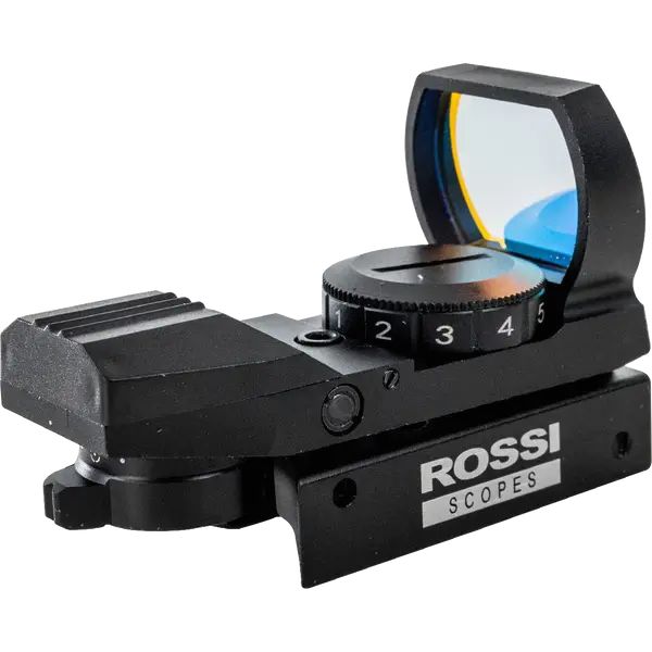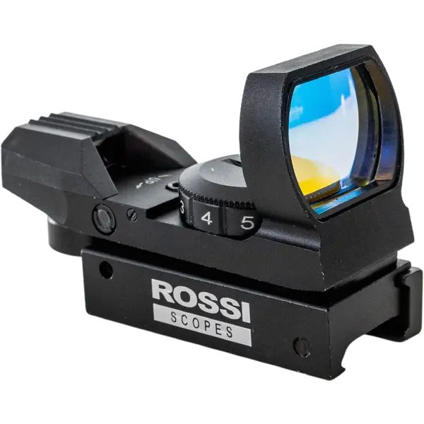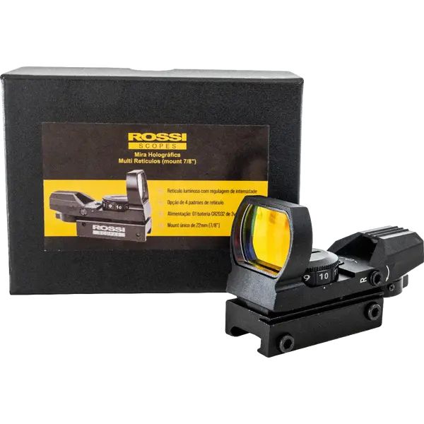 A Mira Holográfica Rossi Multi Retículos 1x22x33 é projetada para oferecer versatilidade e precisão. Com quatro padrões de retículo luminoso, ela permite ao usuário escolher entre diferentes opções de mira, adaptando-se a diversas situações de tiro. O retículo pode ser ajustado nas cores verde ou vermelha, com cinco níveis de intensidade de brilho para cada cor, garantindo visibilidade ideal em diferentes condições de luz. A lente de 22x33 mm proporciona um campo de visão amplo, facilitando a aquisição rápida do alvo.