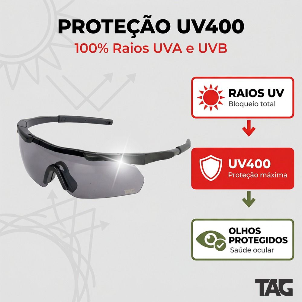 O Óculos Tático TAG Shadow foi desenvolvido para quem busca desempenho em atividades como airsoft, ciclismo, tiro esportivo e aventuras outdoor.
