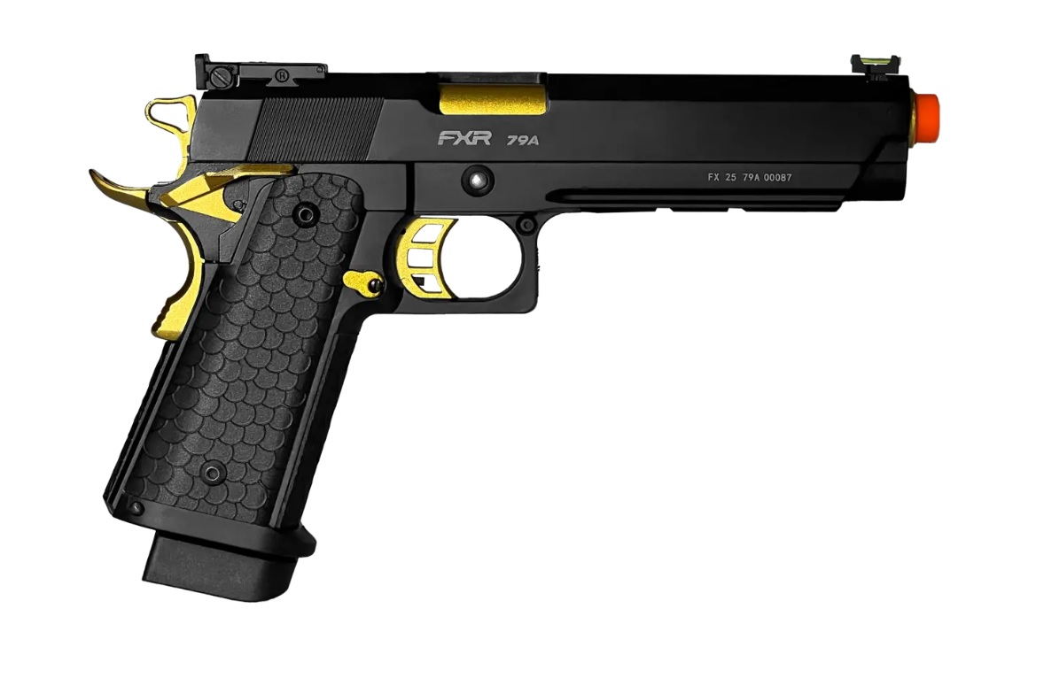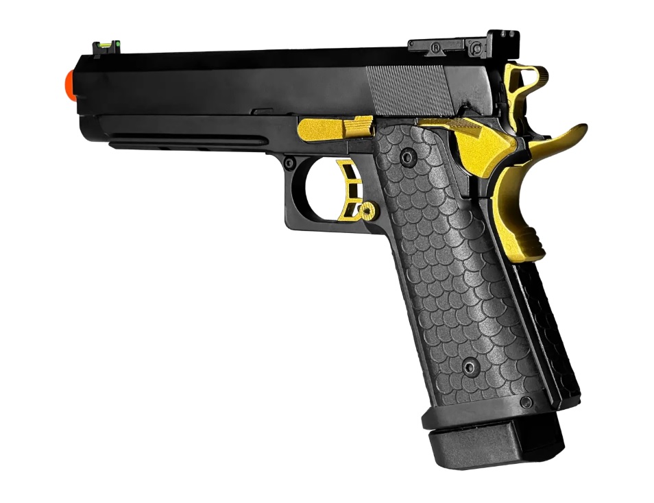 A Pistola Airsoft Double Bell CO2 79A 1911 Hi-Capa é um modelo full metal inspirado na plataforma 1911, que oferece alto realismo e desempenho confiável, com sistema GBB de recuo realista, calibre 6mm, velocidade aproximada de 310 FPS com BBs 0.20g, modo semi-automático e hop-up ajustável para maior precisão; conta ainda com travas funcionais, miras com fibra óptica, magazine para 28 BBs e acompanha maleta rígida, sendo ideal para jogos, treinamentos e colecionadores que buscam qualidade e robustez.