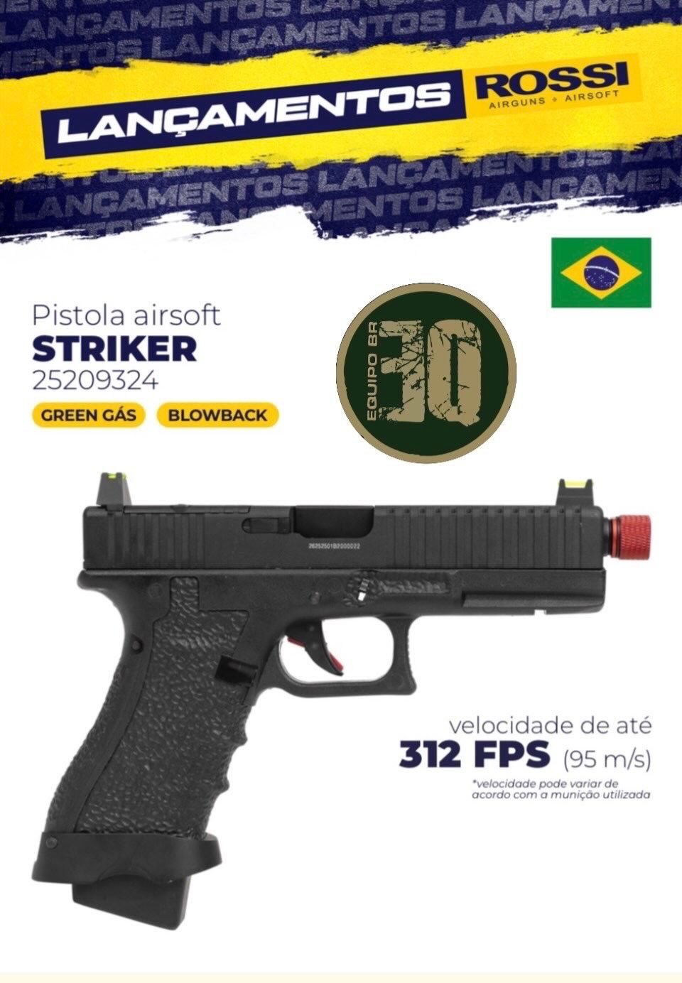 Pistola Airsoft Green Gás Rossi Striker Black Blowback