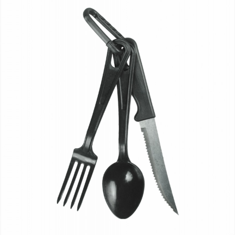 Jogo de talher articulado de ABS, contendo garfo, faca e colher.