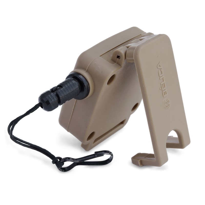 - Trava usada para prender o fiel retrtil ao cinto.