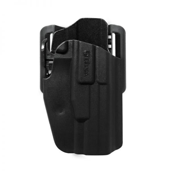 - Catraca rotativa que possibilita a rotação do coldre, para ajuste do ângulo e maior conforto no manuseio do equipamento;