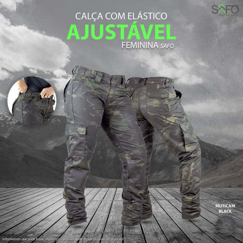 Calça Tática feminina com Cintura ajustável MULTICAM BLACK