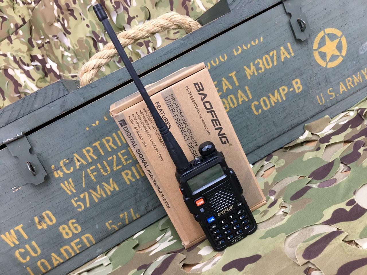 O rádio Baofeng UV-5R é um rádio portátil compacto do tipo Walk Talk que fornece 4 watts nas faixas de frequência de 136-174 / 420-450 Hz.