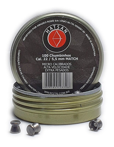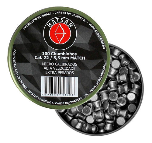 - Itens inclusos: 01 Caixa Chumbinho Hatsan Match 5.5mm 100un.
