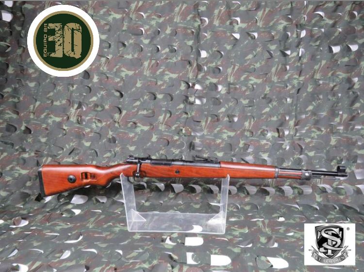 Origem do modelo: A Karabiner 98k é um fuzil de ação por ferrolho adotado em 1935 como o fuzil padrão de infantaria da Wehrmacht da Alemanha Nazista, considerado um dos melhores desenvolvidos da longa linha de fuzis da Mauser. O fuzil era reconhecido por sua excelente precisão e alcance efetivo de até 500 metros. Por este motivo era também utilizado com uma mira telescópica como um fuzil de precisão, no qual estendia o alcance efetivo até 800 metros quando utilizada por um atirador furtivo.