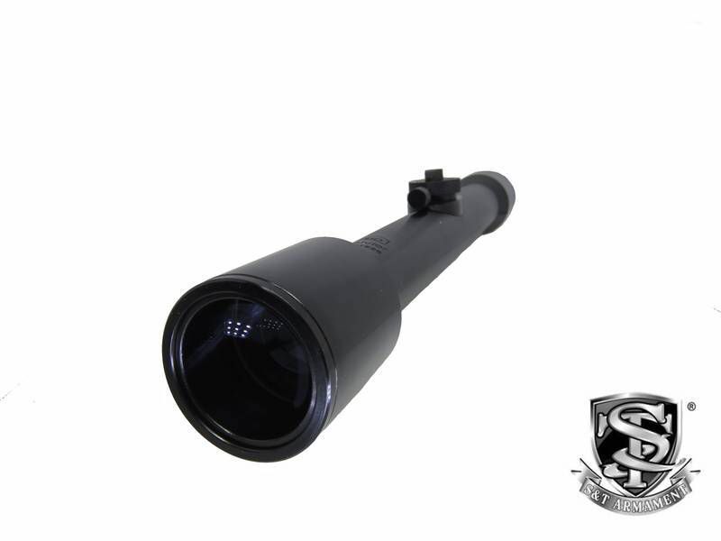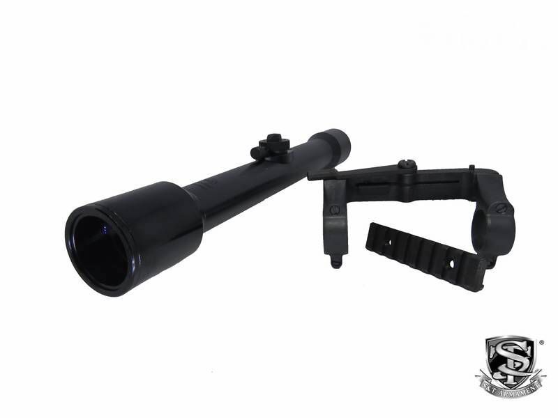 Descrição: Luneta 276mm, ampliação 4x lente 32,1mm x 28,5mm (real) e trilho com suporte lateral (igual ao da arma de fogo).
