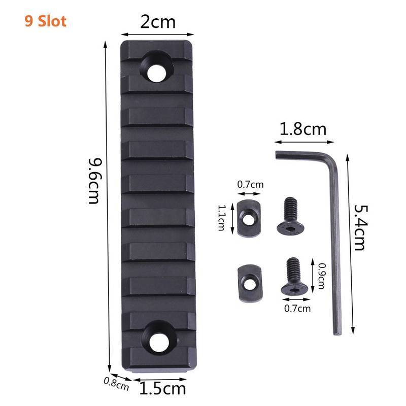Trilho Metal 9(10cm) Slots Preto p/ M-Lock