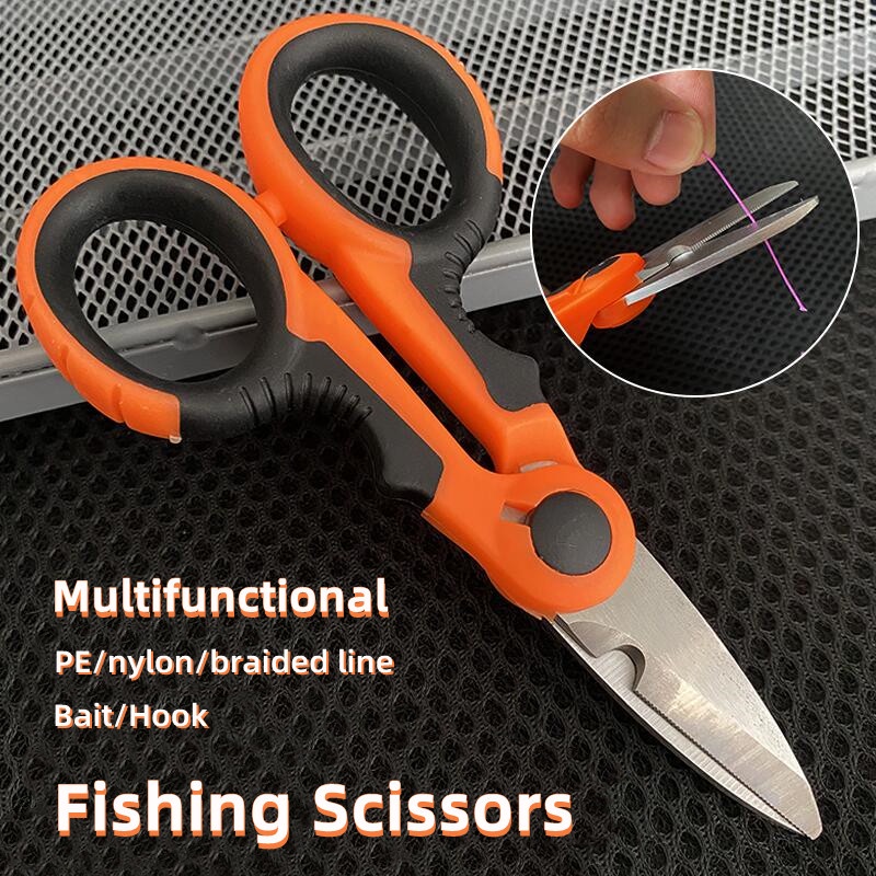 ❥ Esta tesoura feita de ao inoxidvel que durvel e resistente ferrugem ❥Adequado para transportar enquanto pesca por causa de seu tamanho pequeno e ❥Tem uma lmina de dente e afiada que pode cortar linha de pesca, pisca de peixe, isca de pesca e assim por diante. Caractersticas】 Esta tesoura tem uma lmina de 3mm de espessura que pode cortar qualquer coisa que se encaixa e tem uma bainha que pode ser facilmente colocada no cinto e bolso da cala.