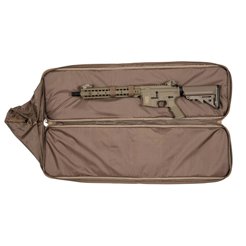 Bolsa para Réplicas Specna Arms fabricada em nylon durável. A bolsa comporta uma réplica de carabina com comprimento máximo de 950 mm e, após abrir a manga adicional, o comprimento aumenta para 1150 mm. Graças aos diversos puxadores de transporte e ao enchimento macio de espuma, a Bolsa para Armas Specna Arms permite transportar a réplica de airsoft com segurança e conforto até o campo de jogo, estande de tiro ou veículo.