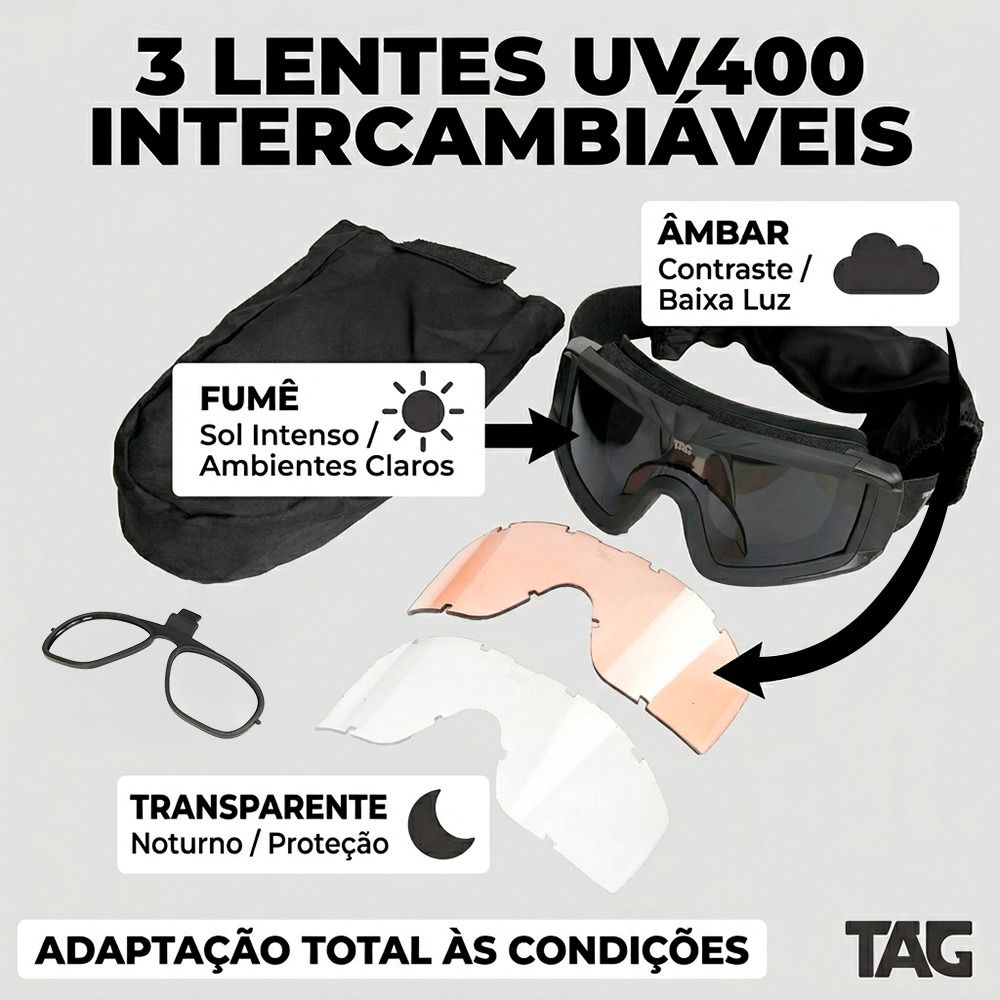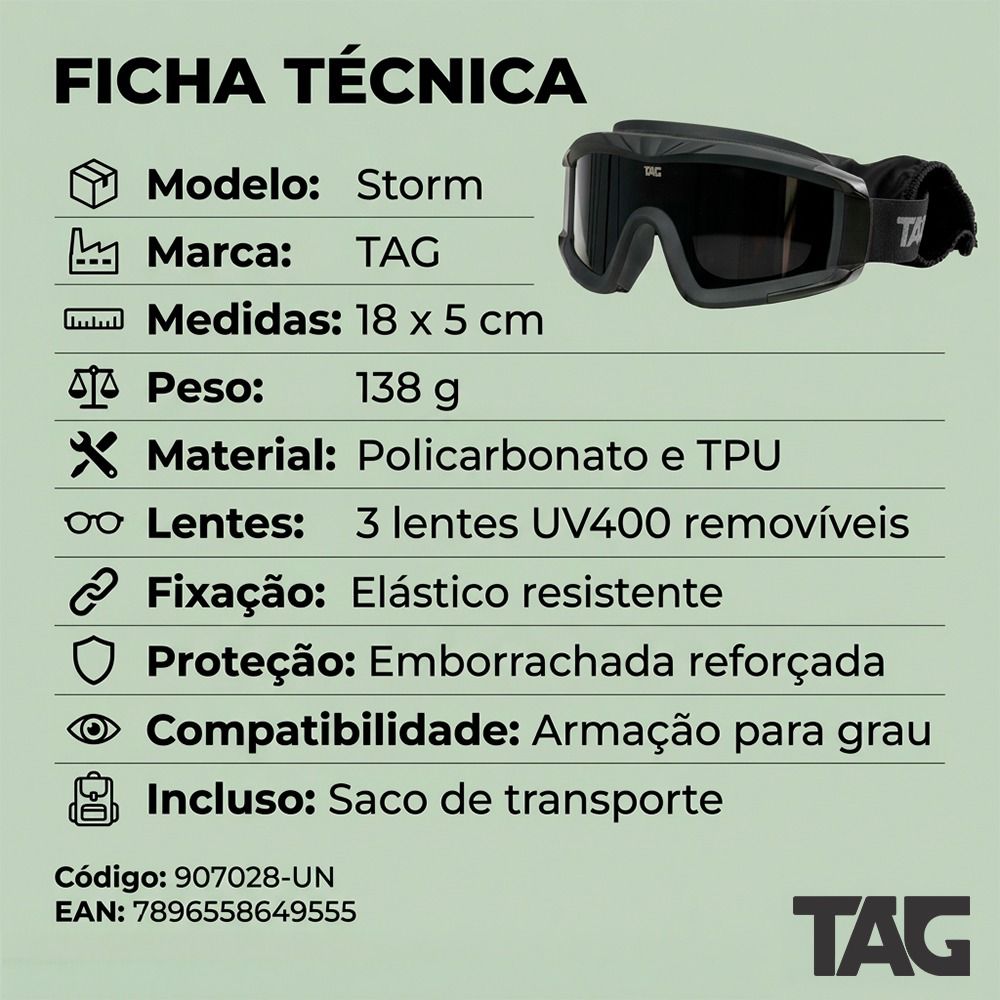 Os Óculos Táticos Storm da TAG foram feitos para quem precisa de segurança, conforto e resistência em operações, airsoft e treinamentos táticos.