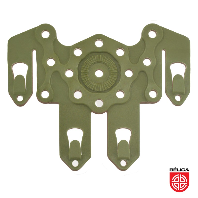 - Utilizado para uso de diversos acessórios; - Ajustável ao colete modular e mochila modular; - Base universal em polímero flexível; - Pode ser ajustada a angulação dos acessórios.
