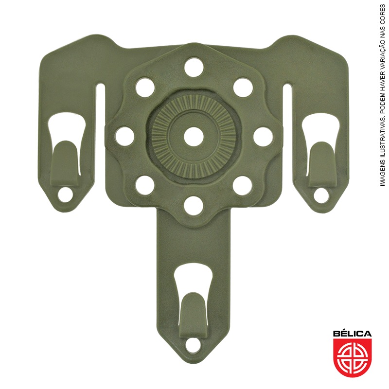 - Utilizado para uso de diversos acessórios; - Ajustável ao colete modular e mochila modular; - Base universal em polímero flexível; - Pode ser ajustada a angulação dos acessórios.