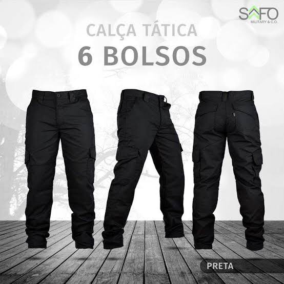 CALÇA TATICA 6 BOLSOS PRETA RIPSTOP