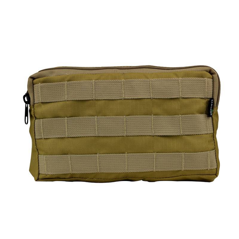 Confeccionada em rip stop com duas camadas de resina, E.V.A e fitas de poliamida proporcionando uma alta qualidade e resistência. Possui sistema de regulagem para cinto tático e colete modular. Fechamento em zíper.